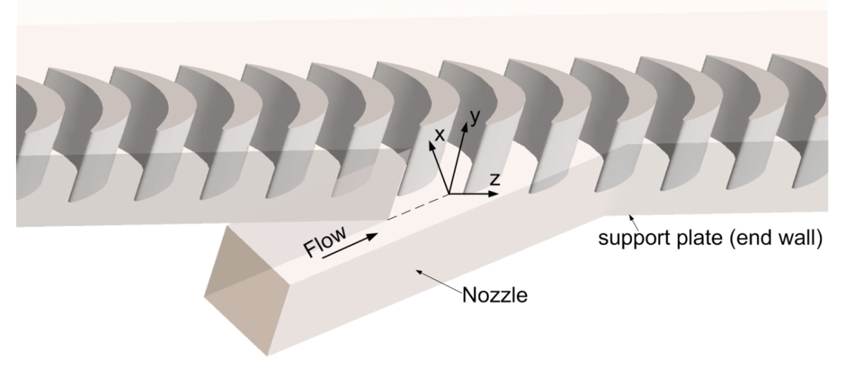 Coordinates and nozzle on the linear cascade experimental apparatus.