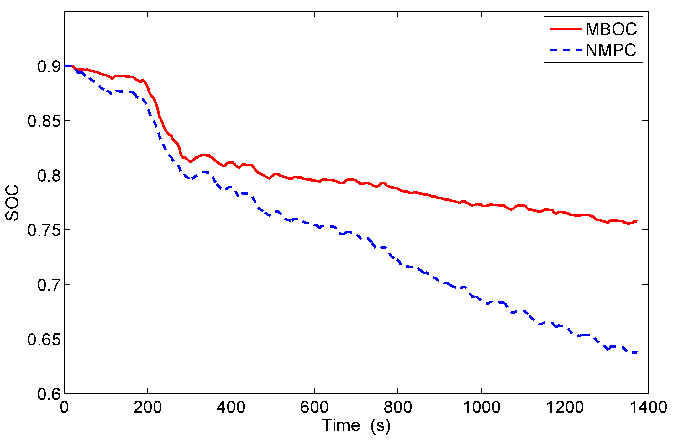 SOC for MBOC and NMPC strategies in ζ = 0.82.