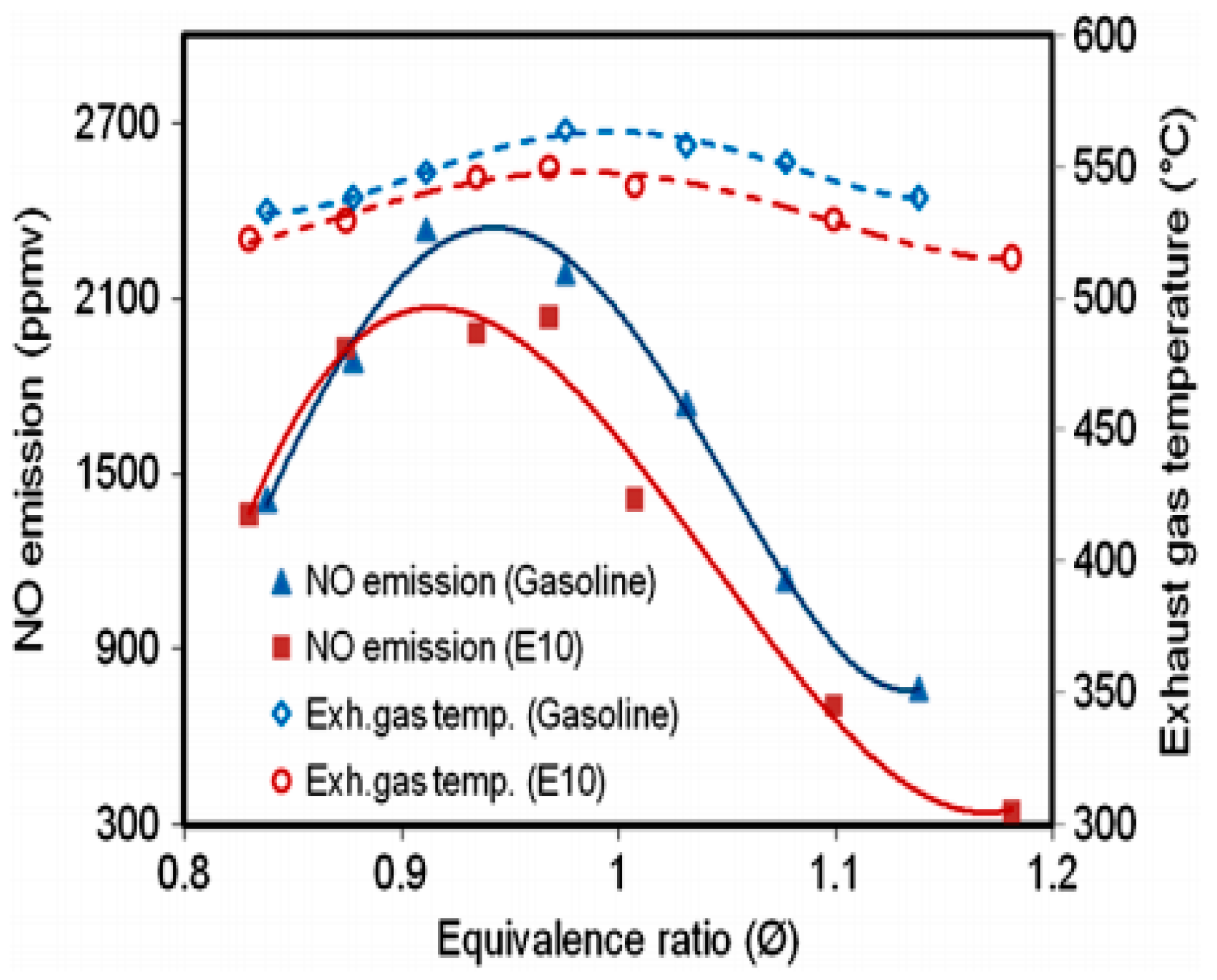 - Masum, B.; Masjuki, H.; Kalam, M.; Fattah, I.R.; Palash, S.; Abedin, M. Effect of ethanol‑gasoline blend on nox emission in si engine. Renew. Sustain. Energy Rev. 2013, 24, 209–222. [Google Scholar] [CrossRef]