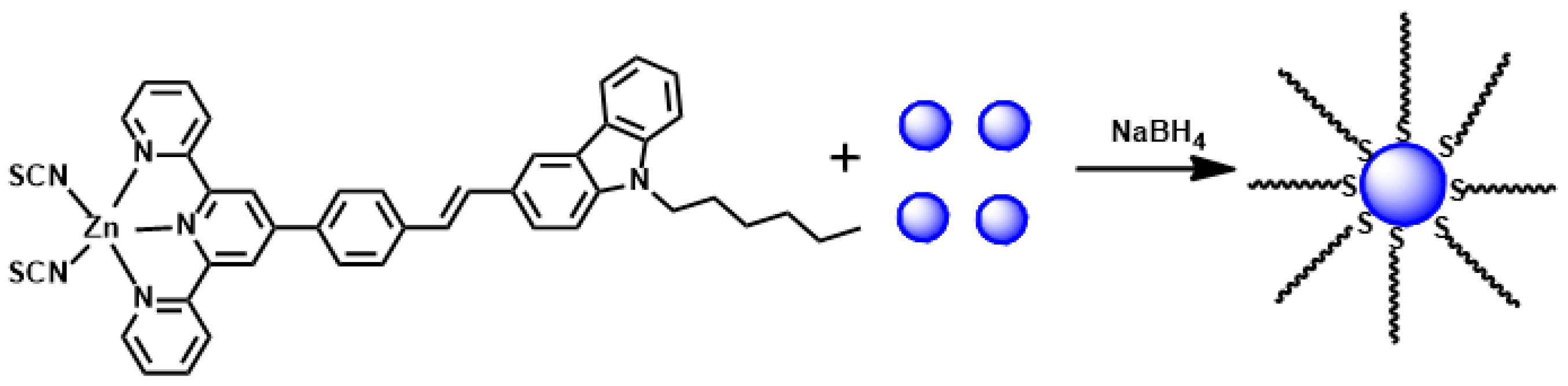 - Gao, Y.H.; Wu, J.Y.; Zhao, Q.; Zheng, L.X.; Zhou, H.P.; Zhang, S.Y.; Yang, J.X.; Tian, Y.P. Solvent-resolved fluorescent Ag nanocrystals capped with a novel terpyridine-based dye. New J. Chem. 2009, 33, 607–611. [Google Scholar] [CrossRef]
