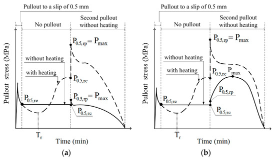 Pullout stress recovery starting time during heating (Tr).