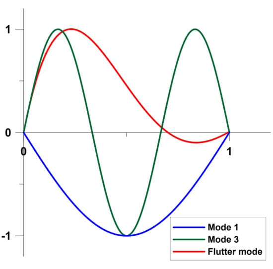 The fluttering mode is completely different that natural vibration modes of the structure—see the graphical representation shown in Figure 2.