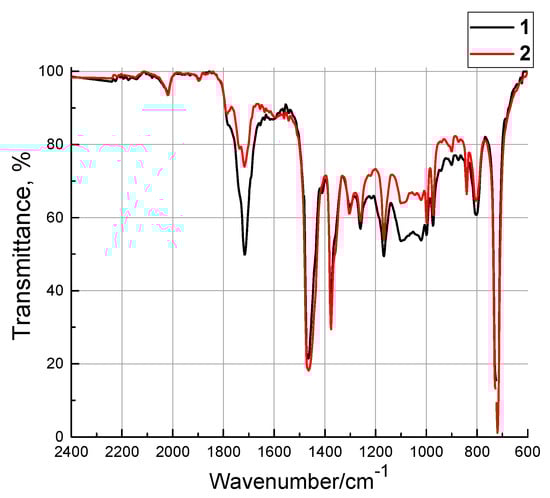 IR spectra were recorded using ‘NICOLET 5700’ (Thermo Fisher Scientific, Waltham, MA, USA) and ‘FT-801’ (SIMEX, Novosibirsk, Russia) Fourier-transform IR spectrometers in the range of 600–4000 cm−1 diffuse reflectance with a diamond (Single Reflection Diamond ATR).