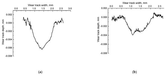The wear track profiles were determined using the data on at least 10 tracks. Then, the wear rate values were estimated based on the experimental test data over at least four samples of each type. Mathematical statistics methods were used for the experimental results processing.