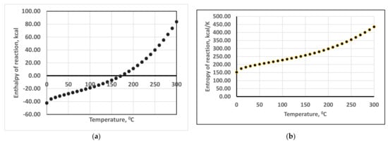 where: Ln-La, Nd, Sm and Gd, (a) denominates the ionic species in aqueous solutions and the stoichiometric coefficients correspond to the highest 8 wt.% Ln as dopants. The estimation has been done using the HSC Chemistry v.10 software and database (Outotec, Pori, Finland). The results are presented in Figure 1a–d. The values obtained for the enthalpies, entropies and Gibbs free energies in Figure 1a–c are very close for the four lanthanides considered in this thermodynamic study, with a difference < 1 kcal.