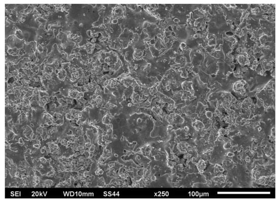 The surface of the Cr3C2–NiCr coating (obtained by scanning electron microscopy) before the laser alloying process is shown in Figure 2.