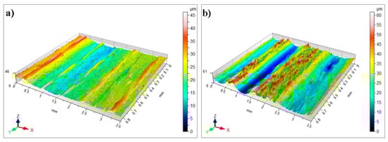 Surface geometric structure (SGS) and roughness were tested at the Kielce University of Technology and, more specifically, in its Laboratory of Computer Measurements of Geometric Quantities. The optical profiler Talysurf CCI was used for the measurements. It applies the patented algorithm of coherence correlation by Taylor Hobson. Thus, 10 pm axial resolution is attained. The area undergoing testing was 1.65 × 1.65 mm2, while the horizontal resolution was 1.65 × 1.65 µm2. TalyMap Platinium (version 6.2) software was applied to analyze the surface 3-D images so that the SGS of the layers could be determined. The measurement of SSS microhardness was carried out on a Shimadzu HMV-G Series tester using the Vickers methodology (with a load of 980.7 mN).