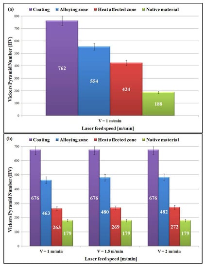 Figure 16 shows a summary of the results of hardness measurements to all samples after laser alloying with Cr3C2–NiCr coating obtained by the Vickers method.