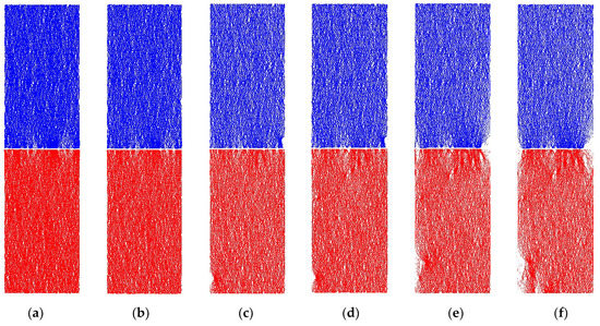 In this study, the displacement control model was selected according to similar papers related to the fracturing of coal/rock pillars [14,21,23]. Each displacement growth meant the mining disturbance to the serial coal pillar specimens [14,38]. Along with the growth of axial displacement, the stress state at the defect areas in the serial coal pillar specimens was satisfied to the strength criterion. Then, the damage would be induced at such areas to reach a new equilibrium state. At this situation, the stress redistribution was induced, which would give birth to further ruptures of adjacent areas in the serial coal pillar specimens [14]. That is, the stress redistribution was constantly repeated during the loading process. It would finally lead to the macroscopic fracturing of serial coal pillar specimens. Therefore, the displacement rate was 0.12 mm/min in the control model.