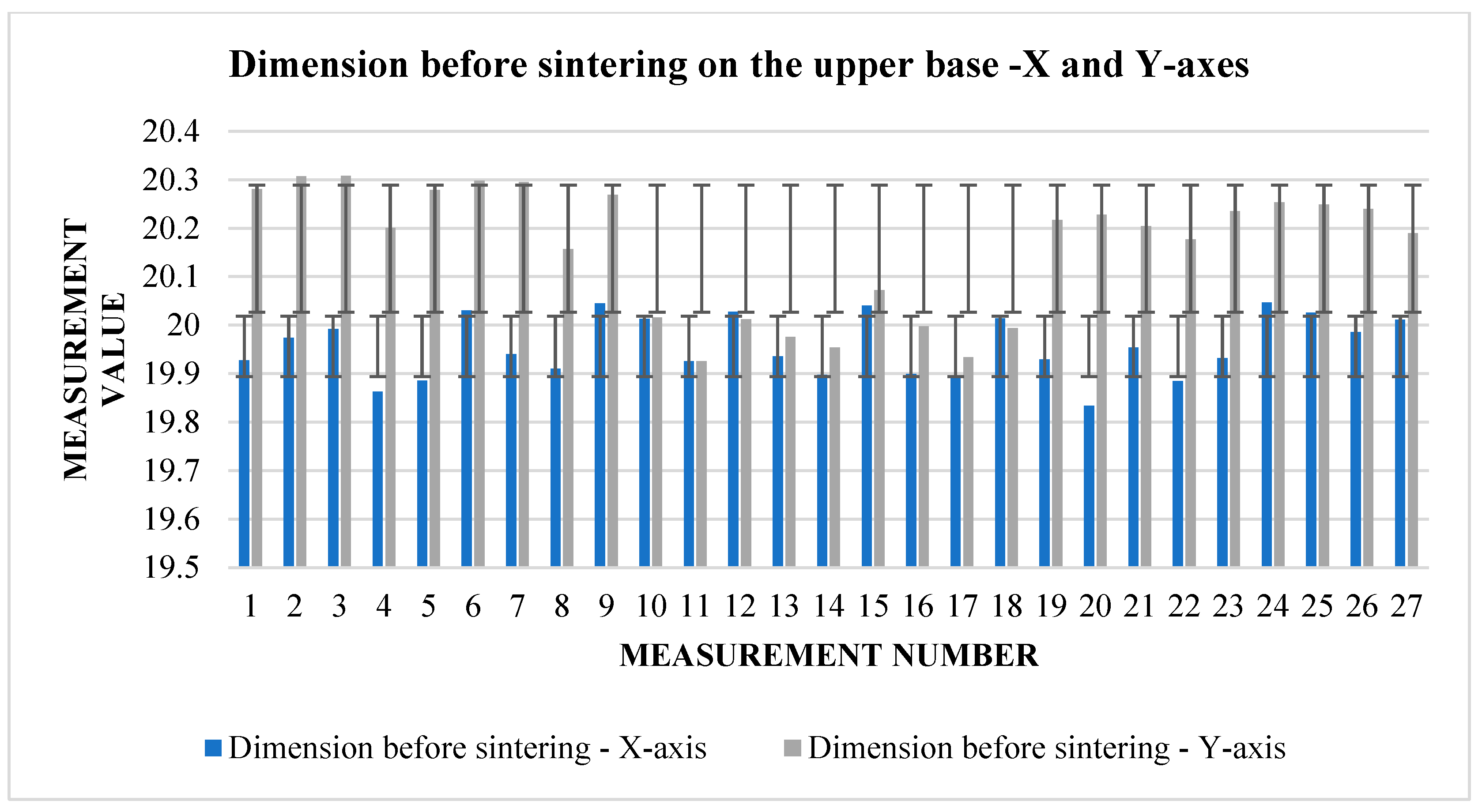 | Dimension before Sintering [mm] | Dimension after Sintering [mm] | Shrinkage Rate | |||