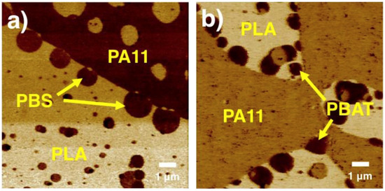 - Zolali, A.M.; Heshmati, V.; Favis, B.D. Ultratough co-continuous PLA/PA11 by interfacially percolated poly(ether-b-amide). Macromolecules 2017, 50, 264–274. [Google Scholar] [CrossRef]