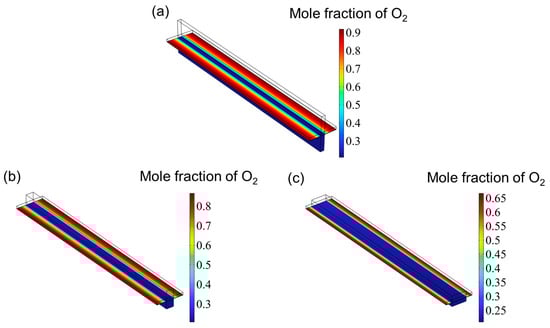 The distribution of oxygen for three types of flow channel: (a) aspect ratio = 0.25, (b) aspect ratio = 1, and (c) aspect ratio = 4.