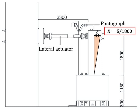 Figure 3 illustrates the loading system. The lateral actuator was positioned at the height of the specimen (at a beam length of 1800 mm) to produce a cantilever moment distribution, and a pantograph was installed above the specimen. The lateral load was applied under displacement control in both positive and negative directions, with one cycle for the lateral drift angles of 0.0625%, 0.125%, and 0.25% and two cycles for the lateral drift angles of 0.5%, 0.75%, 1.0%, 1.5%, 2.0%, 3.0%, 4.0%, and 5.0%. In this study, the lateral drift angle R is defined as the ratio of lateral displacement to the beam length of 1800 mm.