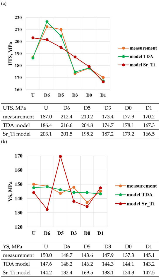 - YS values non-negative and greater than 100 MPa (according to EN 1706 [21] for AlSi9Cu alloy YSmin = 100 MPa) and only those where the condition YS < UTS is met for the same values of Sr and Ti,