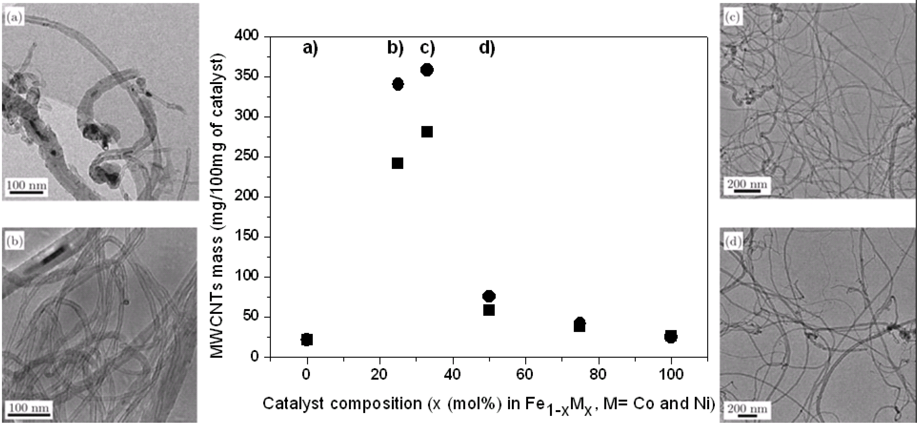 - Chiang, W.H.; Sankaran, R.M. Linking catalyst composition to chirality distributions of as-grown single-walled carbon nanotubes by tuning NixFe1-x nanoparticles. Nat. Mater. 2009, 8, 882–886. [Google Scholar] [CrossRef] [PubMed]