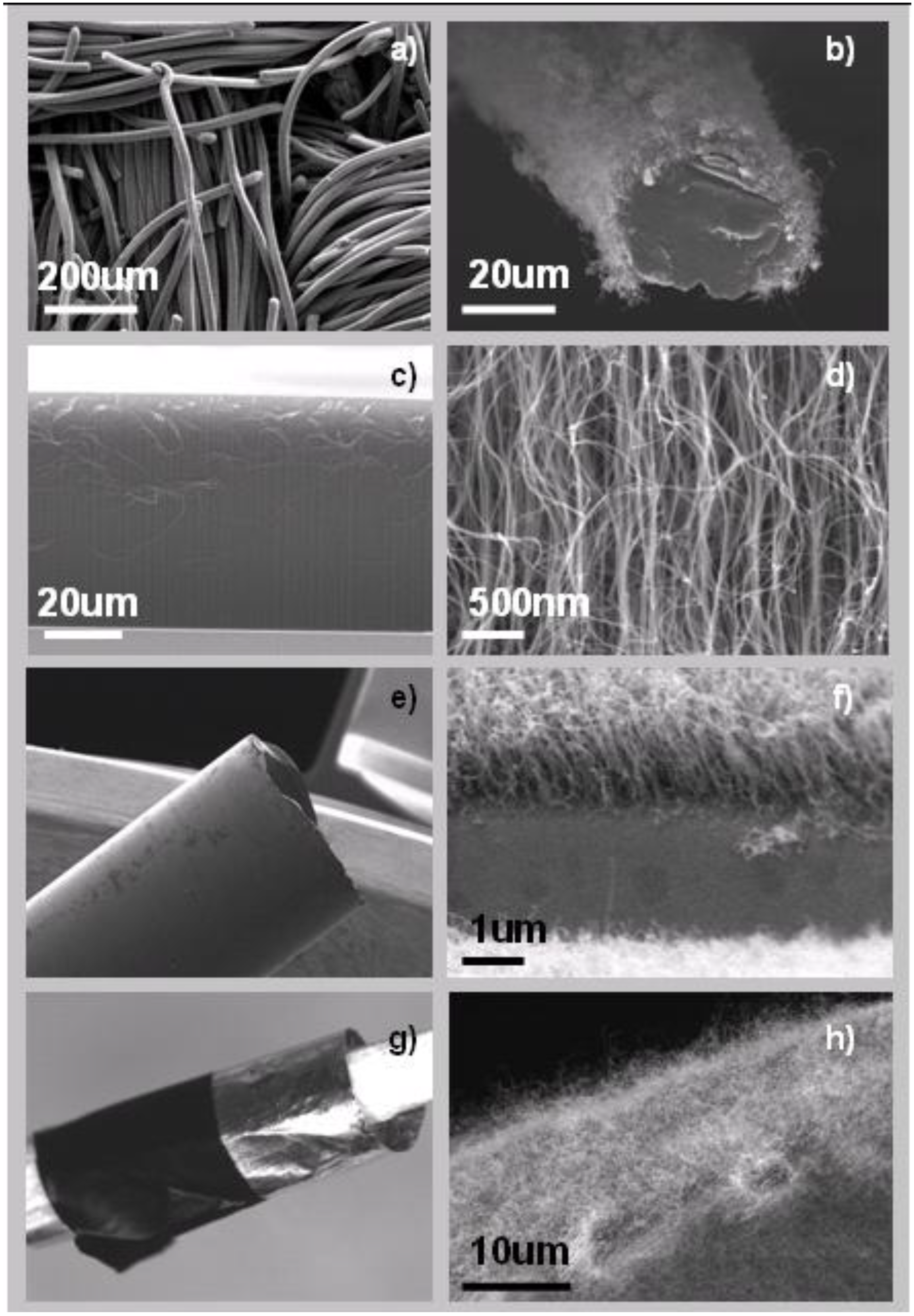 - Lukic, B.; Seo, J.W.; Couteau, E.; Lee, K.; Gradecak, S.; Berkecz, R.; Hernadi, K.; Delpeux, S.; Cacciaguerra, T.; Beguin, F.; Fonseca, A.; Nagy, J.B.; Csanyi, G.; Kis, A.; Kulik, A.J.; Forró, L. Elastic modulus of multi-walled carbon nanotubes produced by catalytic chemical vapour deposition. Appl. Phys. A: Mater. Sci. Process. 2005, 80, 695–700. [Google Scholar] [CrossRef]