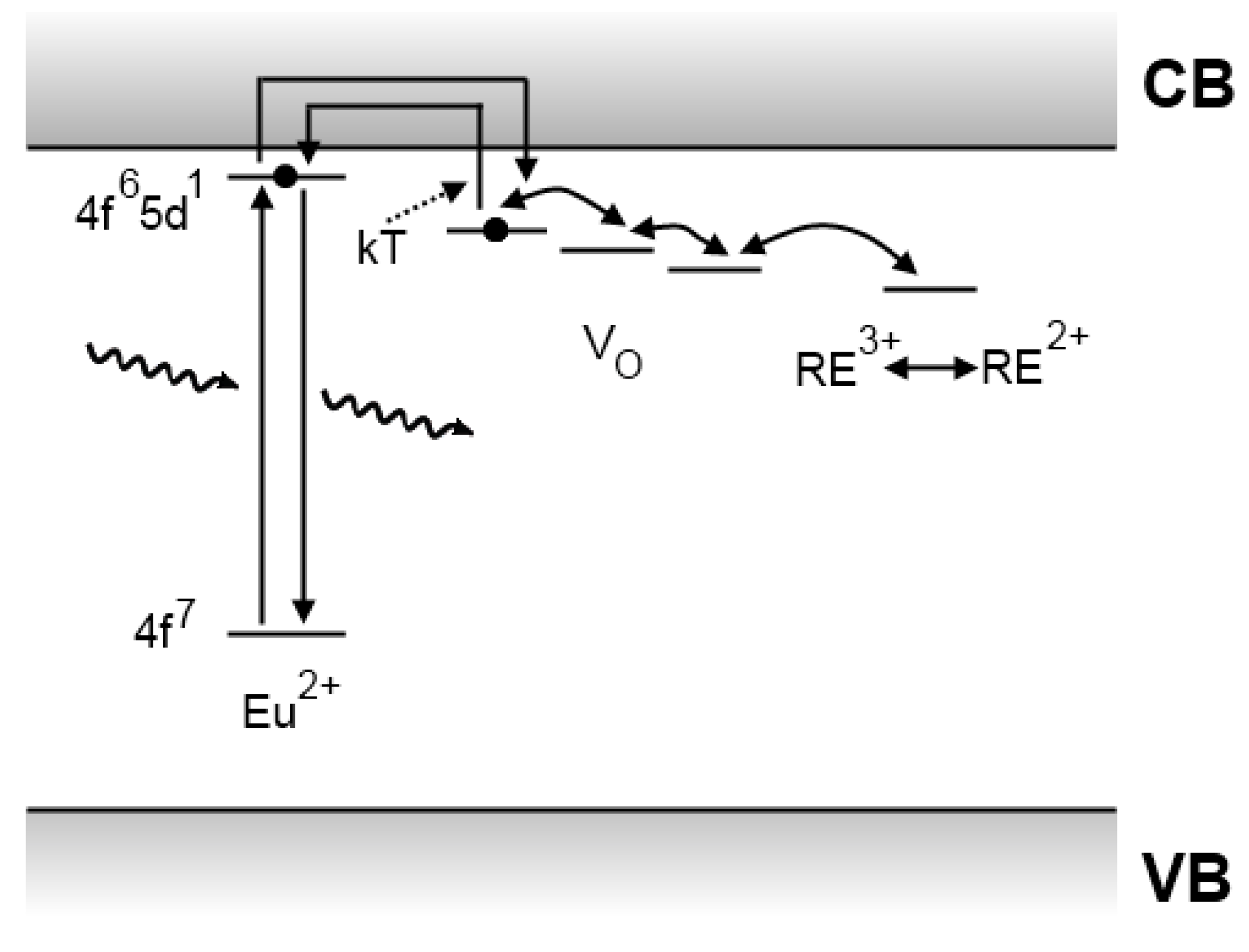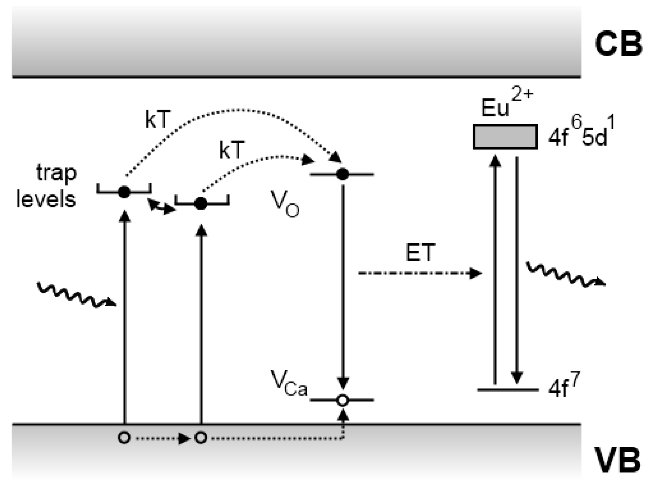- Jia, D.; Jia, W.; Evans, D.R.; Dennis, W.M.; Liu, H.; Zhu, J.; Yen, W.M. Trapping processes in CaS:Eu2+, Tm3+. J. Appl. Phys. 2000, 88, 3402–3407. [Google Scholar] [CrossRef]