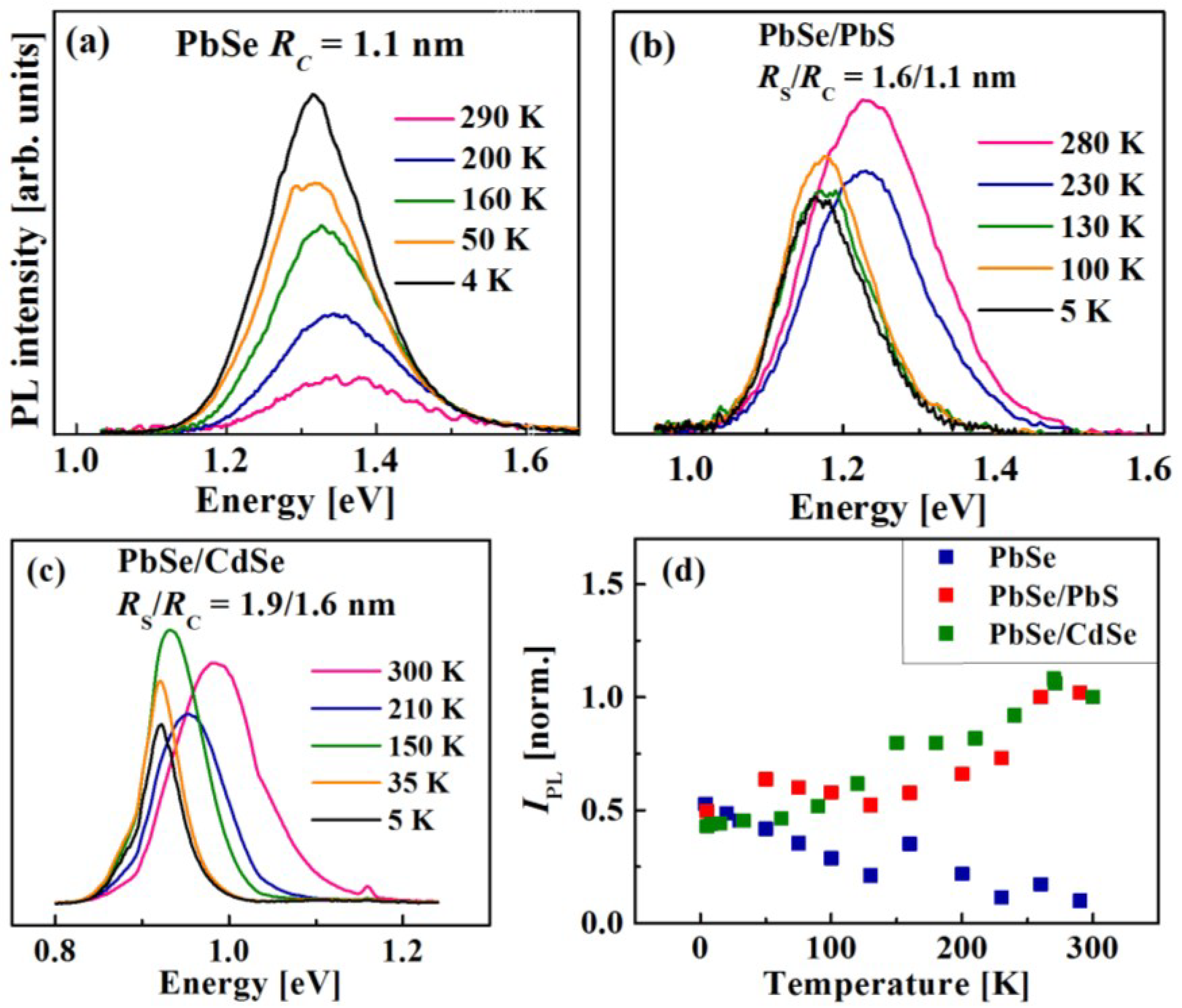 4.1. Continuous-Wave Room-Temperature Photoluminescence Measurements in PbSe/PbSexS1–x and PbSe/CdSe QDs