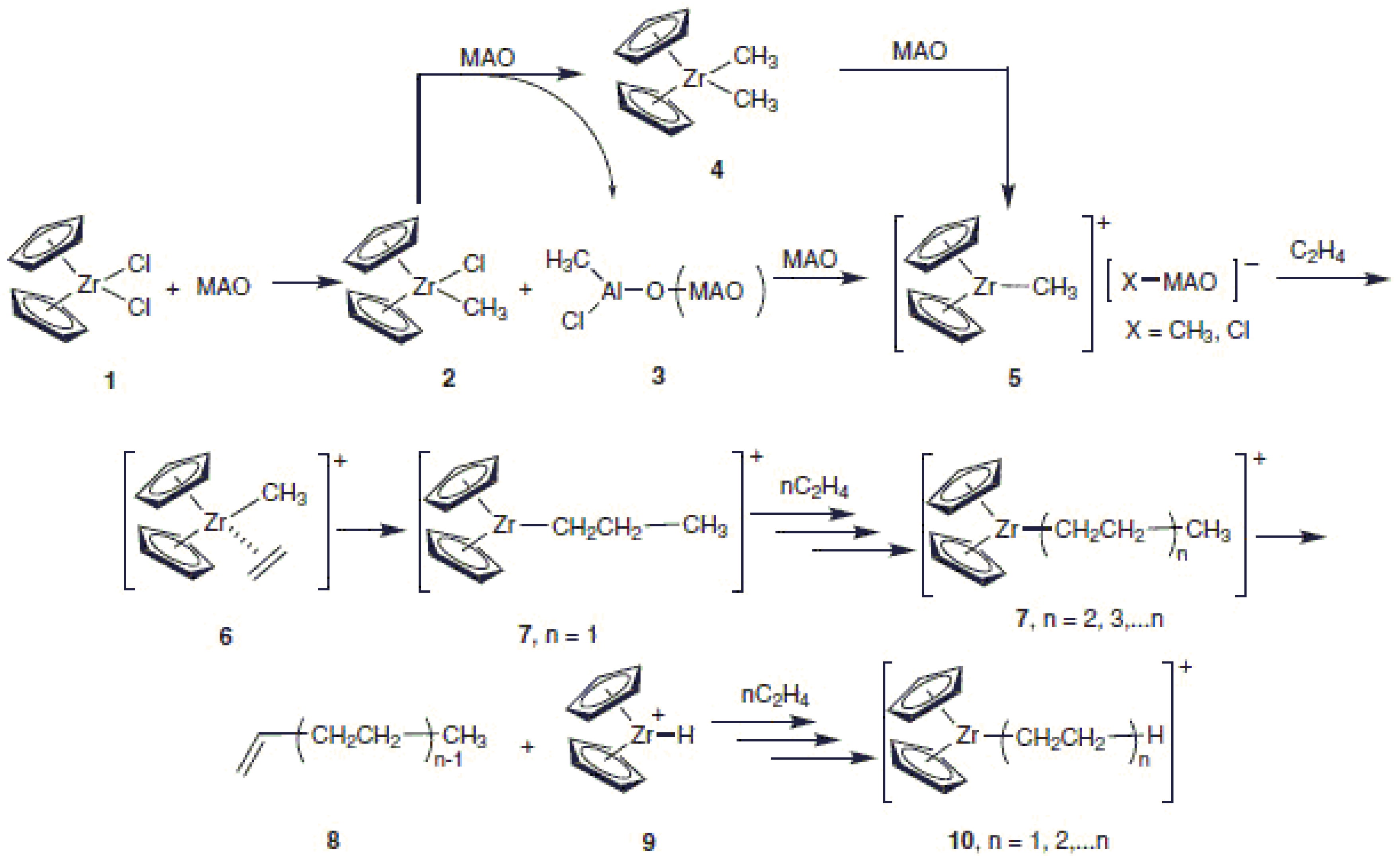 - Sinn, H.; Kaminsky, W.; Vollmer, H.J.; Woldt, R. “Living Polymers” on Polymerization with Extremely Productive Ziegler Catalysts. Angew. Chem. Int. Ed. Engl. 1980, 19, 390–392. [Google Scholar] [CrossRef]