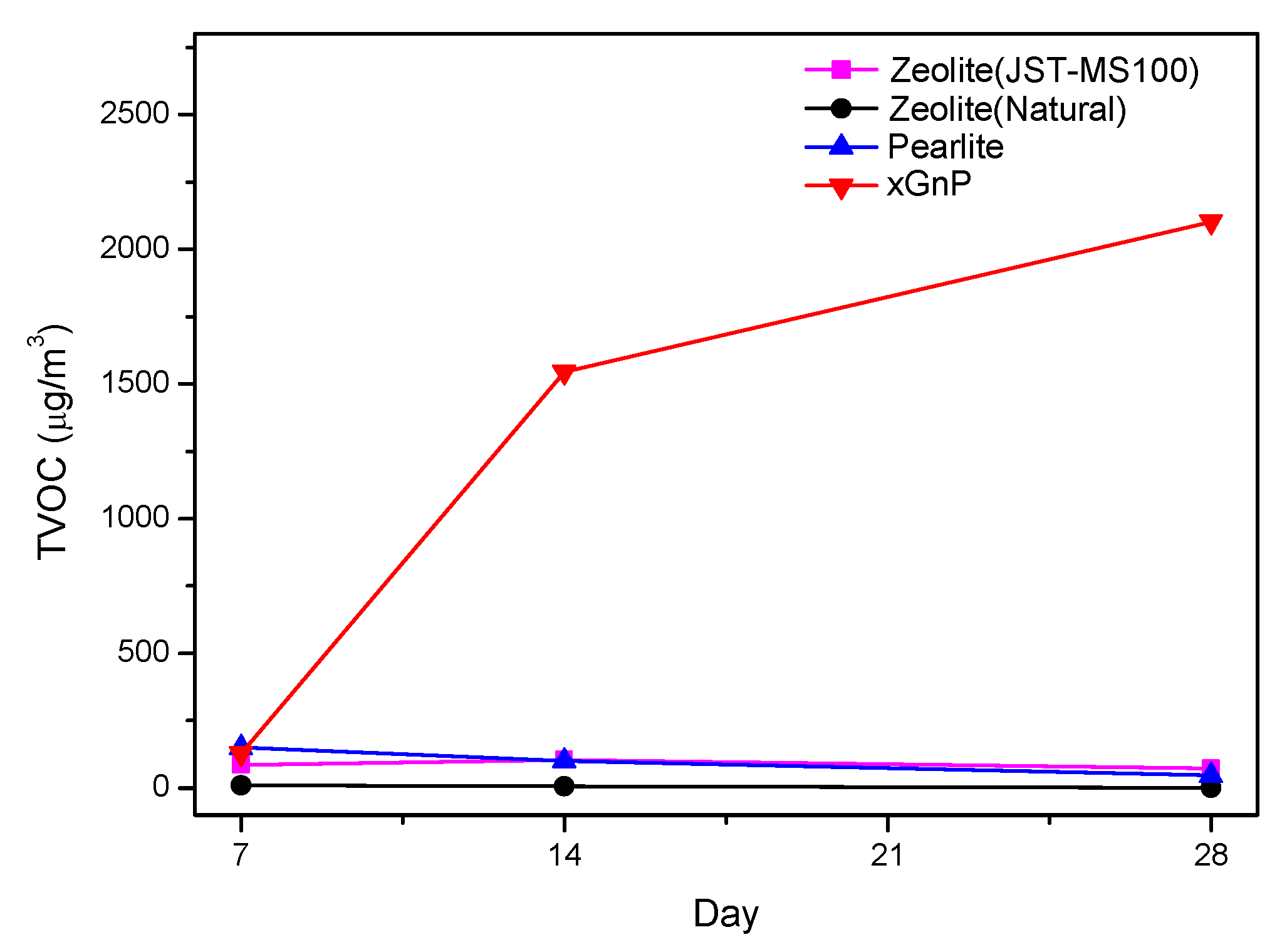 TVOC adsorption amount of xGnP for 28 days.