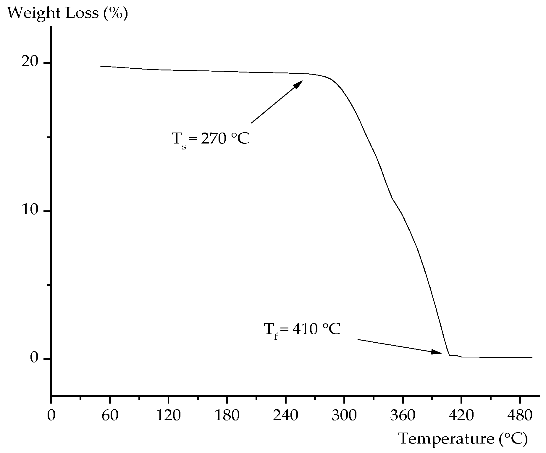 3.2. Thermogravimetric (TGA) Analysis of PMMA