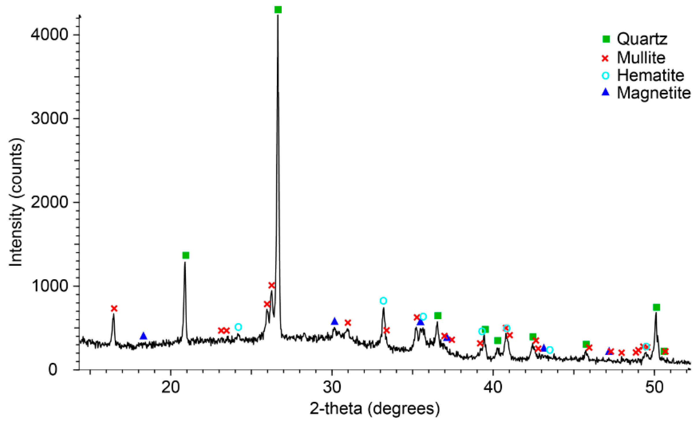 - Williams, R.; van Riessen, A. Determination of the Reactive Component of Fly Ashes for Geopolymer Production Using XRF and XRD. Fuel 2010, 89, 3683–3692. [Google Scholar] [CrossRef]