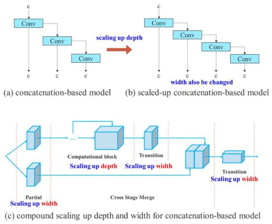 Compound model scaling is a process that involves modifying the characteristics of a model to improve its performance in various applications. For instance, it can help to improve the model’s depth, width, and resolution. Different scaling considerations in conventional techniques with concatenation-based architectures (such as ResNet or PlainNet) must be taken into account collectively rather than separately. For instance, increasing model depth will affect the ratio between a transition layer’s input and output channels, which may result in less hardware being used by the model. For a concatenation-based model, YOLOv7 introduces compound model scaling as shown in Figure 2. The compound scaling method can preserve the model’s original design elements. It can be used to modify the output channel and depth factor of a computational block. This process can be performed in order to maintain the model’s ideal structure. For instance, changing the block’s depth factor can affect the output channel.