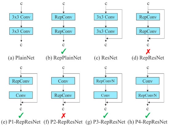 Despite being an excellent VGG architecture, the planned re-parameterized version of RepConv loses significant accuracy when applied to either DenseNet or ResNet. In Figure 3, YOLOv7, the architecture is presented without an identity connection. Concatenation or residual is used to replace a previously created layer with a re-parameterized convolutional layer.