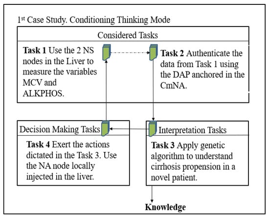 Thus, this work is dedicated to the determination of the NS that should be deployed in a medical context, in order to later be able to perform analysis tasks of these nanodata using ARMNANO. This is a combinatorial optimization problem that, in our case, is intended to be solved using genetic algorithms (GAs) [,,,]. Specifically, DASS solves this optimization problem using the CTM-AC. We test our approach in a case study to monitor the liver, in order to determine its status [,,]. The research questions posed in this study are: Is it possible to perform data analysis tasks to meet the context objectives using nanodata? From there, is it possible to define the NSs required to capture the nanodata in data analysis tasks? Thus, the contributions of this work are: (i) the definition of an intelligent system based on nanotechnology for data analysis for e-health applications; (ii) the definition of an approach based on GA to determine the NSs that should be deployed in a medical context for nanodata analysis tasks; (iii) the definition of a nanodata-based approach to monitor the state of a liver.