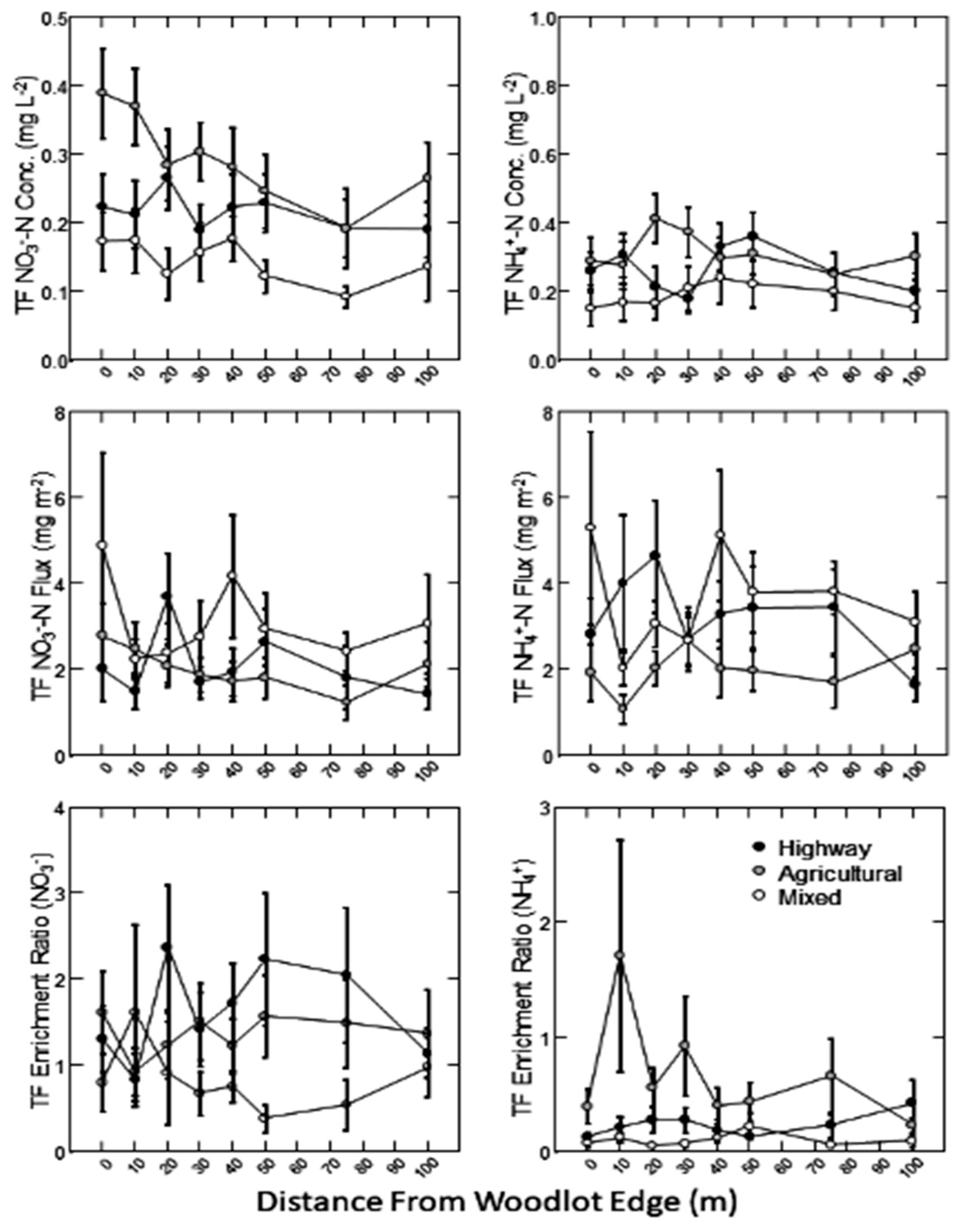 - N deposition to forest fragments, as evidenced by throughfall N composition, will vary by adjacent land use.
