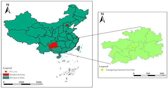 Geographic location of Changpoling International Forest Park, Guiyang, Guizhou Province, China.