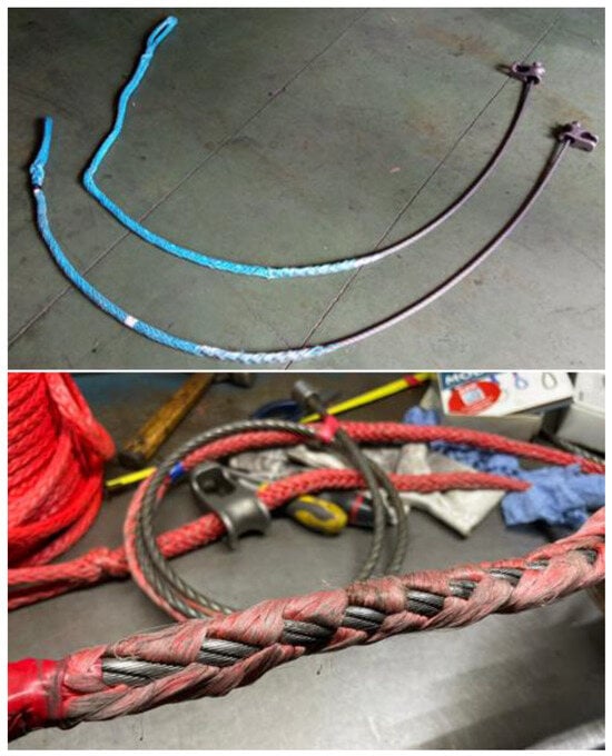 The samples of metal–synthetic hybrid cables tested in commercial hauling operations provided valuable feedback for the evaluation and improvement of the hybrid splice.