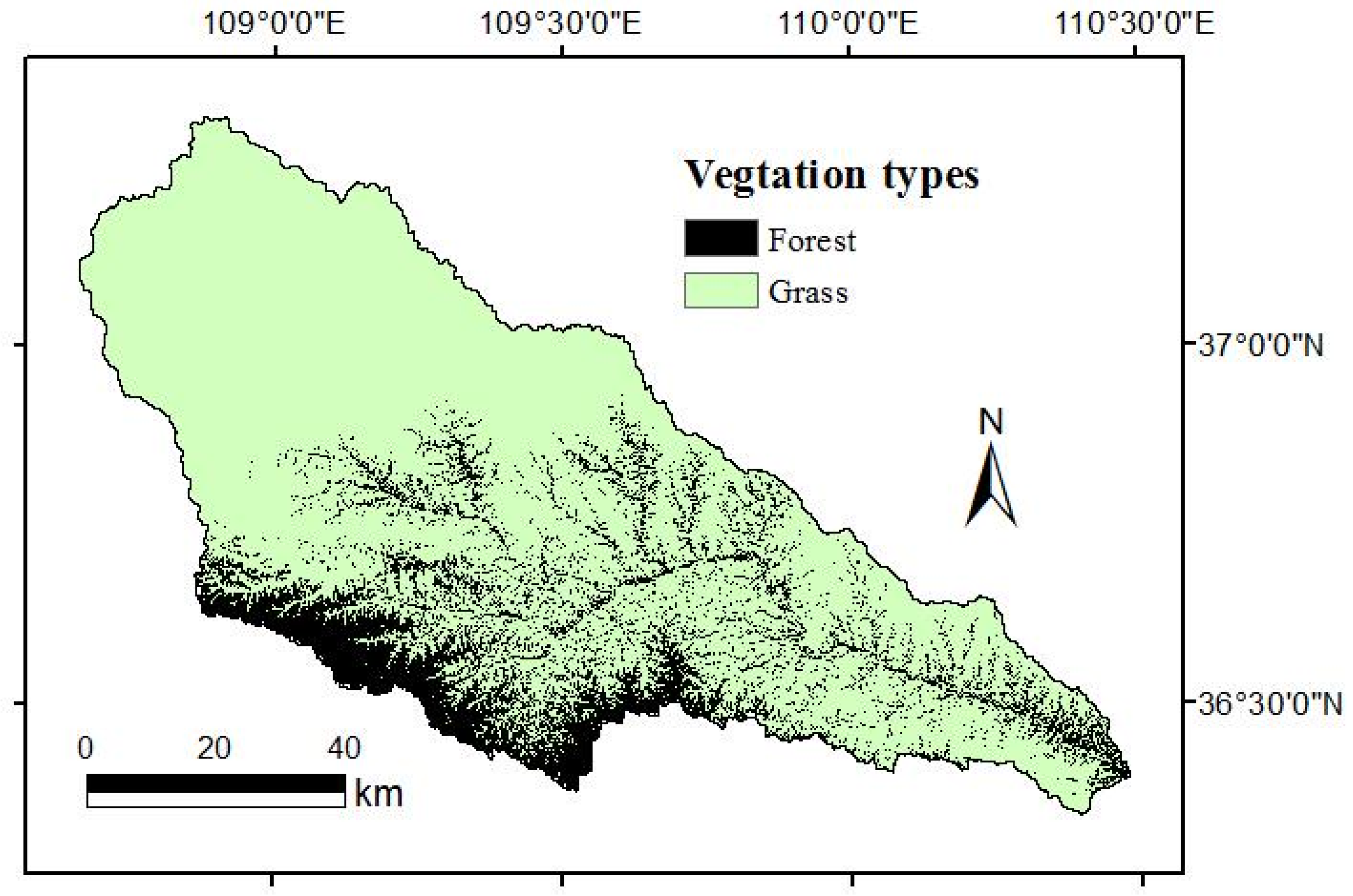 Distribution of actual vegetation in the Yanhe River catchment.