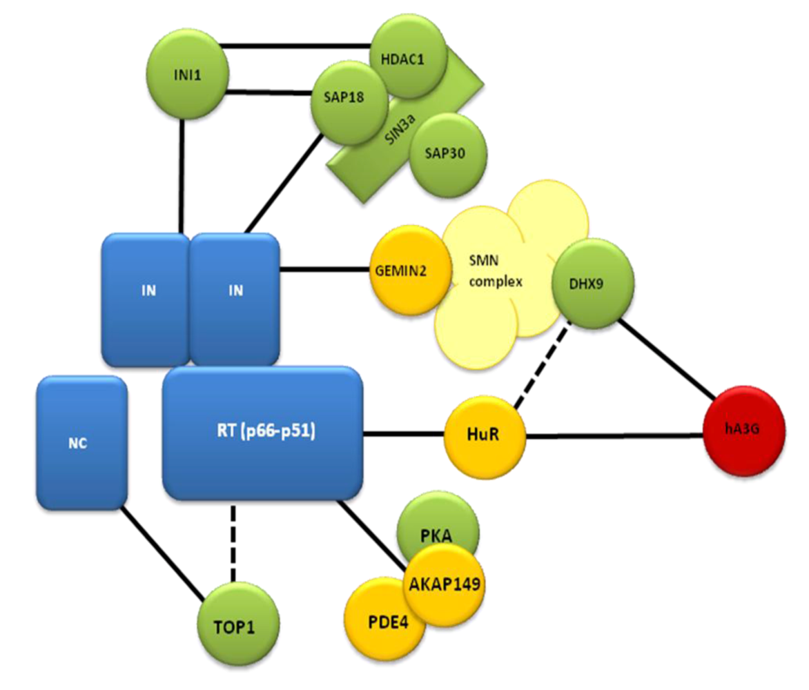 HIV-1; reverse transcriptase; HuR; AKAP149; DNA topoisomerase I; Sin3a; HDAC1; SAP18; SAP; SMN; Gemin2; lysl-tRNA synthetase; INI1; DHX9; APOBEC3G 1. Overview
