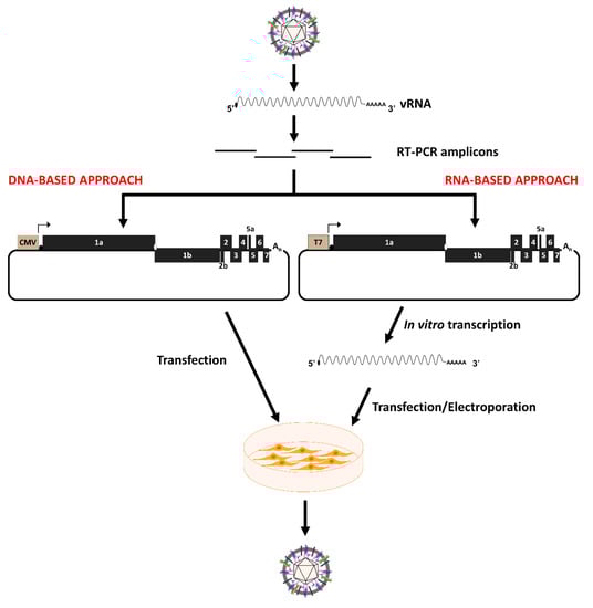 - Boyer, J.C.; Haenni, A.L. Infectious transcripts and cDNA clones of RNA viruses. Virology 1994, 198, 415–426. [Google Scholar] [CrossRef]