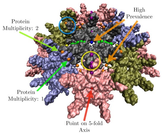 - Wilson, D.P. Protruding Features of Viral Capsids are Clustered on Icosahedral Great Circles. PLoS ONE 2016, 11, 1–22. [Google Scholar] [CrossRef] [PubMed][Green Version]