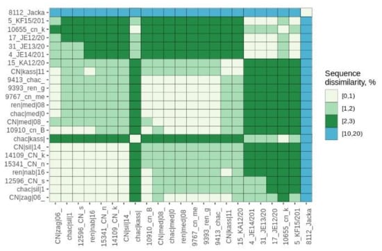 - FigTree. Available online: http://tree.bio.ed.ac.uk/software/figtree/ (accessed on 12 January 2021).