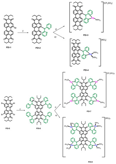 3.1. Synthesis of PDIs and Metal Complexes