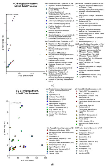 3.4.2. Functional and Pathway Analyses of Global b.End3 Proteome with GO and KEGG Bioinformatic Databases