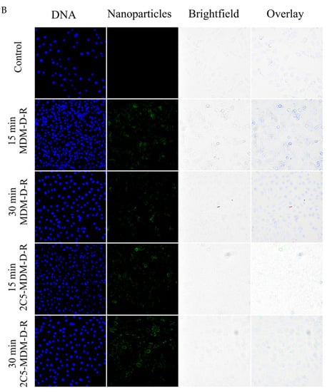 2.2.6. Cellular Uptake of MDM Nanoparticles in Monolayer
