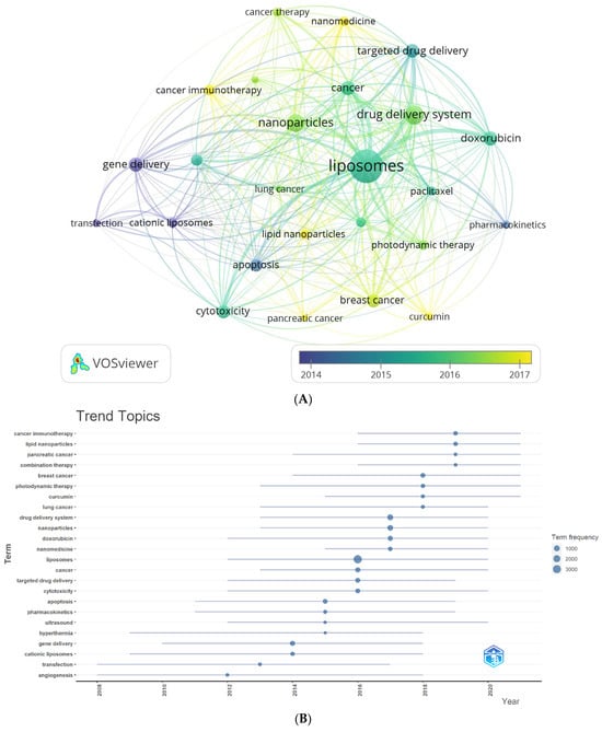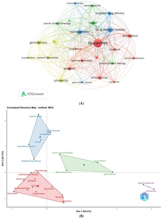 In conclusion, this comprehensive bibliometric analysis sheds light on the remarkable potential of liposomes’ applications in cancer therapy in various scientific domains. Our exploration into the current state of research and future directions underscores the transformative impact of liposomes. The potential of liposomes and lipid nanoparticles in detecting and treating cancer has emerged as a key focus, offering the tantalizing prospect of enhanced patient outcomes with reduced adverse effects. Furthermore, charged liposomes may allow the interaction with charged cellular components, a characteristic advantageous in the context of cancer cells.