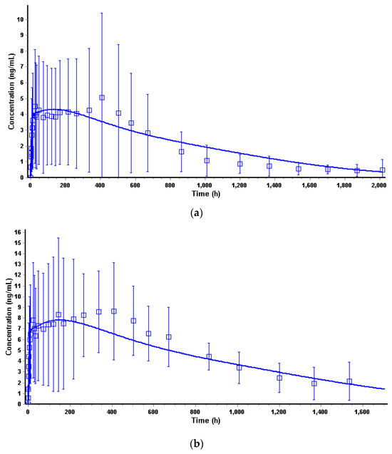 - Sharan, S.; Lanyan Fang, L.; Viera Lukacova, V.; Xiaomei Chen, X.; Andrew, C.; Hooker, A.C.; Karlsson, M.O. Model-Informed Drug Development for Long-Acting Injectable Products: Summary of American College of Clinical Pharmacology Symposium. Clin. Pharmacol. Drug Dev. 2021, 10, 220–228. [Google Scholar] [CrossRef] [PubMed]