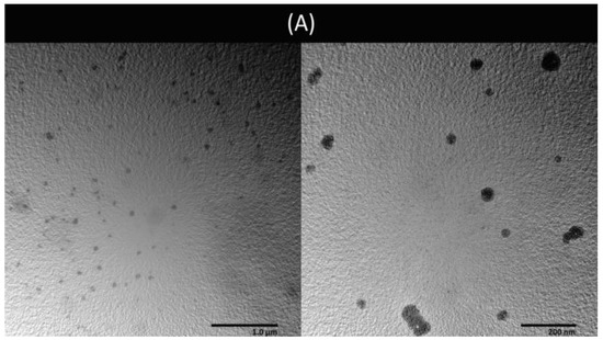 The liposome’s shape and structure were examined by a high-resolution transmission electron microscope (HR-TEM, JEM-2100 plus, Tokyo, Japan). Before being examined, the unstained liposomal suspension was diluted with distilled water and applied on a copper grid.