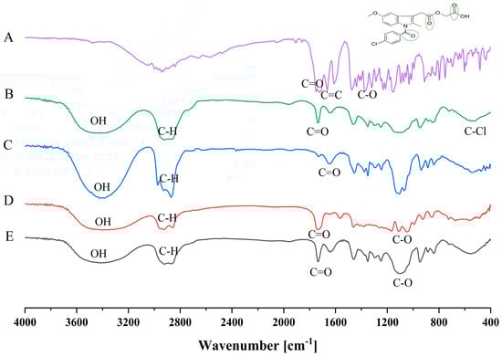 Acemetacin (ACM) is a promising candidate in this regard. It is a glycolic acid ester prodrug of indomethacin, developed with the aim of reducing the gastrointestinal toxicity associated with its parent compound. Following oral administration, ACM undergoes enzymatic hydrolysis in the intestinal wall and plasma, liberating the active parent compound “indomethacin”. This prodrug design significantly reduces direct gastric irritation compared with indomethacin, thereby offering an inherent pharmacological safety advantage []. While indomethacin can be delivered as an enteric-coated capsule to reduce gastric exposure, premature or incomplete coating protection may still result in mucosal injury. It has been reported that ACM used to maintain equivalent analgesic and anti-inflammatory efficacy with improved tolerability compared to indomethacin. However, clinical reports have shown that, although ACM is generally better tolerated than indomethacin, residual gastric side effects can still occur, particularly during long-term therapy or in sensitive patients [].