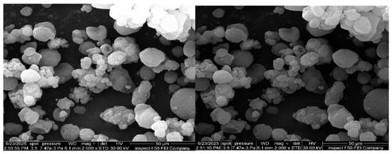 Field emission scanning electron microscopy (FE-SEM) is employed to visualize the ACM-SEME. In this study, the surface morphology of the spray dried ACM-SEME was investigated using an FE-SEM instrument (Inspect F50, FEI Company). Samples were mounted on specimen holders using double-sided carbon adhesive tape. Prior to imaging, a uniform gold coating was applied via sputter coating using an automated fine coater to enhance surface conductivity and image clarity. The analysis was performed under varying magnification levels to obtain detailed structural insights [].