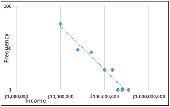 The Association of University Technology Managers (AUTM) is an organization that collects and reports technology transfer data from universities and other institutions. An AUTM royalty income graph illustrates a similarly skewed distribution of venture capital returns (see Figure 2). A few institutions receive a significant income from their IP portfolio, but the vast majority do not break even. If one plots the AUTM income data on a log–log scale, the data approximate a straight line, suggesting a power-law distribution (see Figure 3).