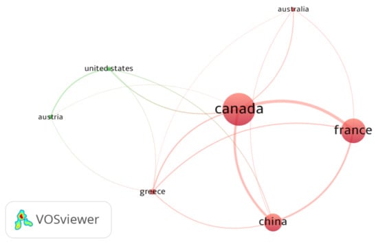 Moreover, based on Figure 3, Canada, France, China, Greece and Australia are bibliographically neighboring. This fact shows that between these countries, there is a strong citation relationship by referencing common papers from countries that participate in the same cluster. Conversely, USA and Austria are showing two different approaches to UAV fire detection, setting the papers apart from what is published in the other countries [].