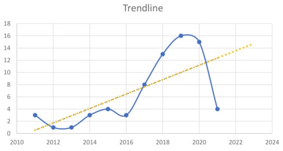 Finally, the number of publications was analyzed via Scopus, in order to reveal any trend in the last decade. Figure 6 shows an exponential increase from 2016 until year 2019. This increase is due to the integration of deep learning through CNN models in the field of Computer Vision and, when compared to classical algorithms, it is observed that their implementation is an easier process. In 2020, there was a slight decrease which continues to decrease further in 2021. The exponential growth until the year 2019 is due to the development of Computer Vision and more specifically Machine Learning methods. The years 2020 and 2021 are pandemic years due to the COVID-19 disease. Moreover, the research was done in the first trimester of 2021, so there were fewer publications.