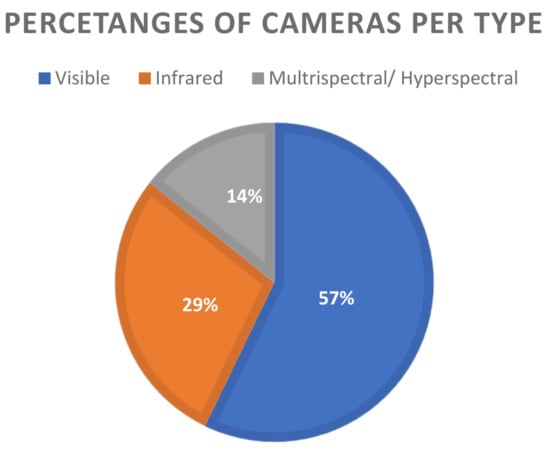 Computer Vision in most applications and studies is based on the use of cameras. In some applications, more than one camera or even sensors were used to help capture images from the UAV. During the review of scientific studies, some categories of cameras emerged: