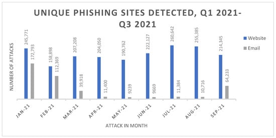 - APWG. Phishing Activity Trends Report: 3rd Quarter 2021. 2021. Available online: https://docs.apwg.org/reports/apwg_trends_report_q3_2021.pdf?_ga=2.147528119.149518382.1644108193-680326765.1644108193&_gl=1*cr9iea*_ga*NjgwMzI2NzY1LjE2NDQxMDgxOTM.*_ga_55RF0RHXSR*MTY0NDEwODE5My4xLjAuMTY0NDEwODE5My4w (accessed on 23 February 2022).